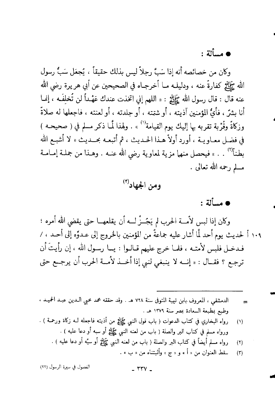 وكان من خصائصه أنه إذا سب رجلاً ليس بذلك حقيقاً، يجعل سب رسول الله صلى الله عليه وسلم كفارة عنه، ودليله ما أخرجاه في الصحيحين «عن أبي هريرة رضي الله عنه قال: قال رسول الله صلى الله عليه وسلم: اللهم إني اتخذت عندك عهداً لن تخلفه، إنما أنا بشر، فأي المؤمنين آذيته، أو شتمته أو جلدته، أو لعنته، فاجعلها له صلاة وزكاة وقربة تقربه بها إليك يوم القيامة» ولهذا لما ذكر مسلم في صحيحه في فضل معاوية، أورد أولاً هذا الحديث، ثم أتبعه بحديث «لاأشبع الله بطناً..» فيحصل منهما مزية لمعاوية رضي الله عنه.