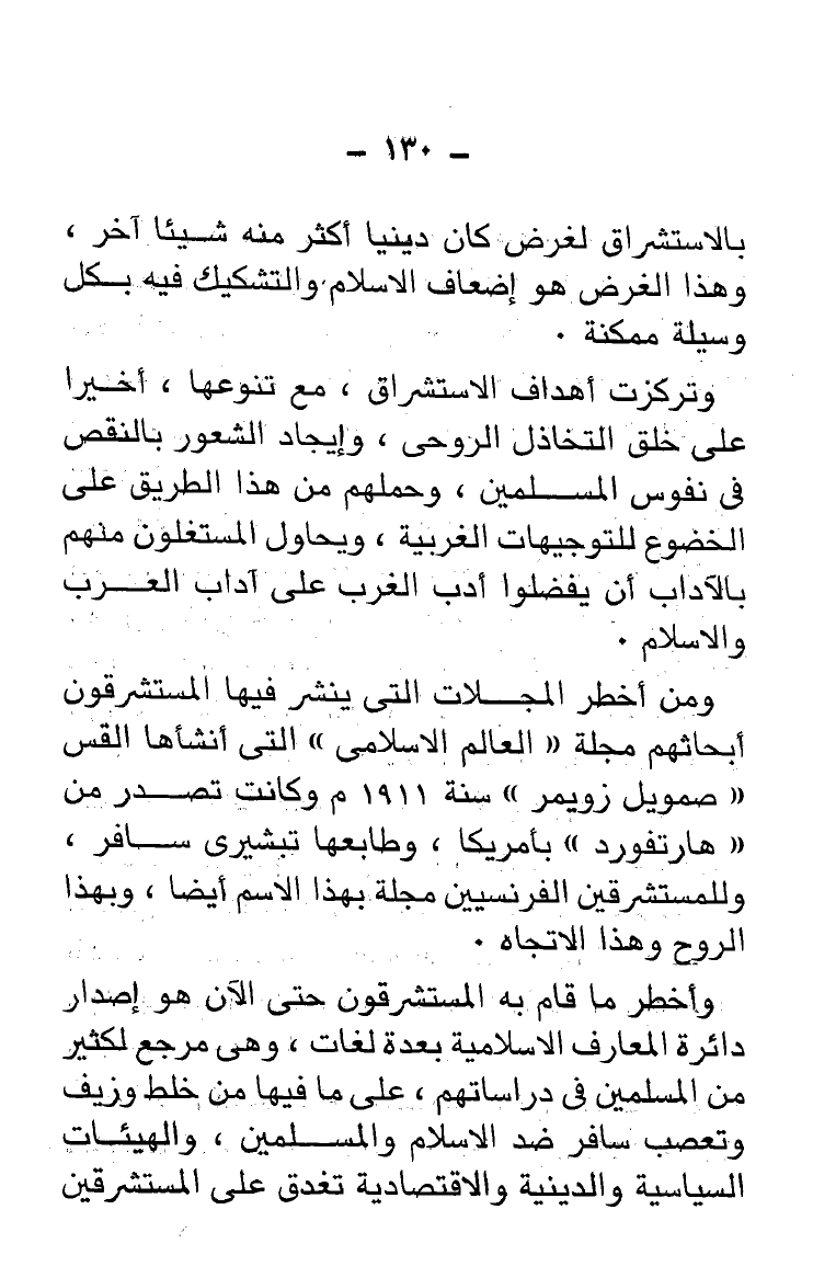 بالاستشراق لغرض كان دينيا أكثر منه شيئًا آخر، وهذا الغرض هو إضعاف الإسلام والتشكيك فيه بكل وسيلة ممكنة.