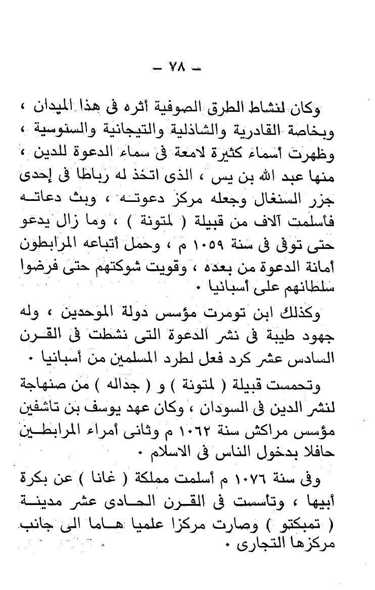 وفى سنة 1076 م أسلمت مملكة (غانا) عن بكرة أبيها، وتأسست فى القرن الحادى عشر مدينة (تمبكتو) وصارت مركزا علميا هاما إلى جانب مركزها التجارى.