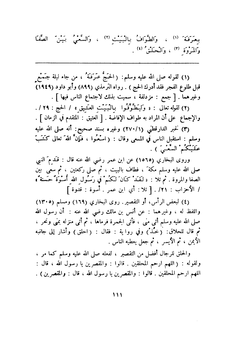 4 - والسعي بين الصفا والمروة (¬3)، والحلق (¬4).