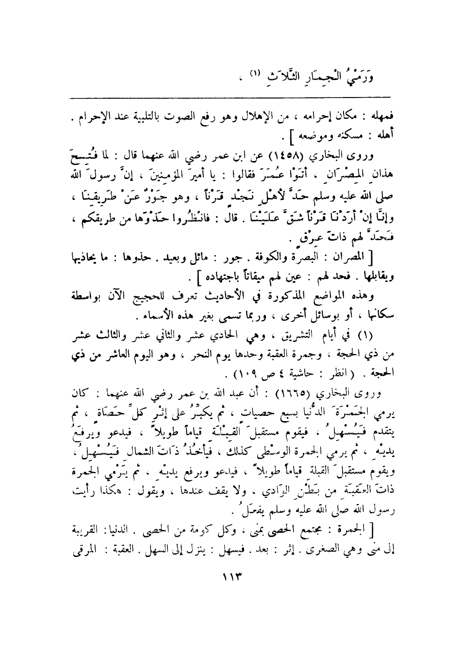 (¬1) في أيام التشريق، وهي الحادي عشر والثاني عشر والثالث عشر من ذي الحجة، وجمرة العقبه وحدها يوم النحر، وهو اليوم العاشر من ذي الحجة. (انظر: حاشية 4 ص 109).