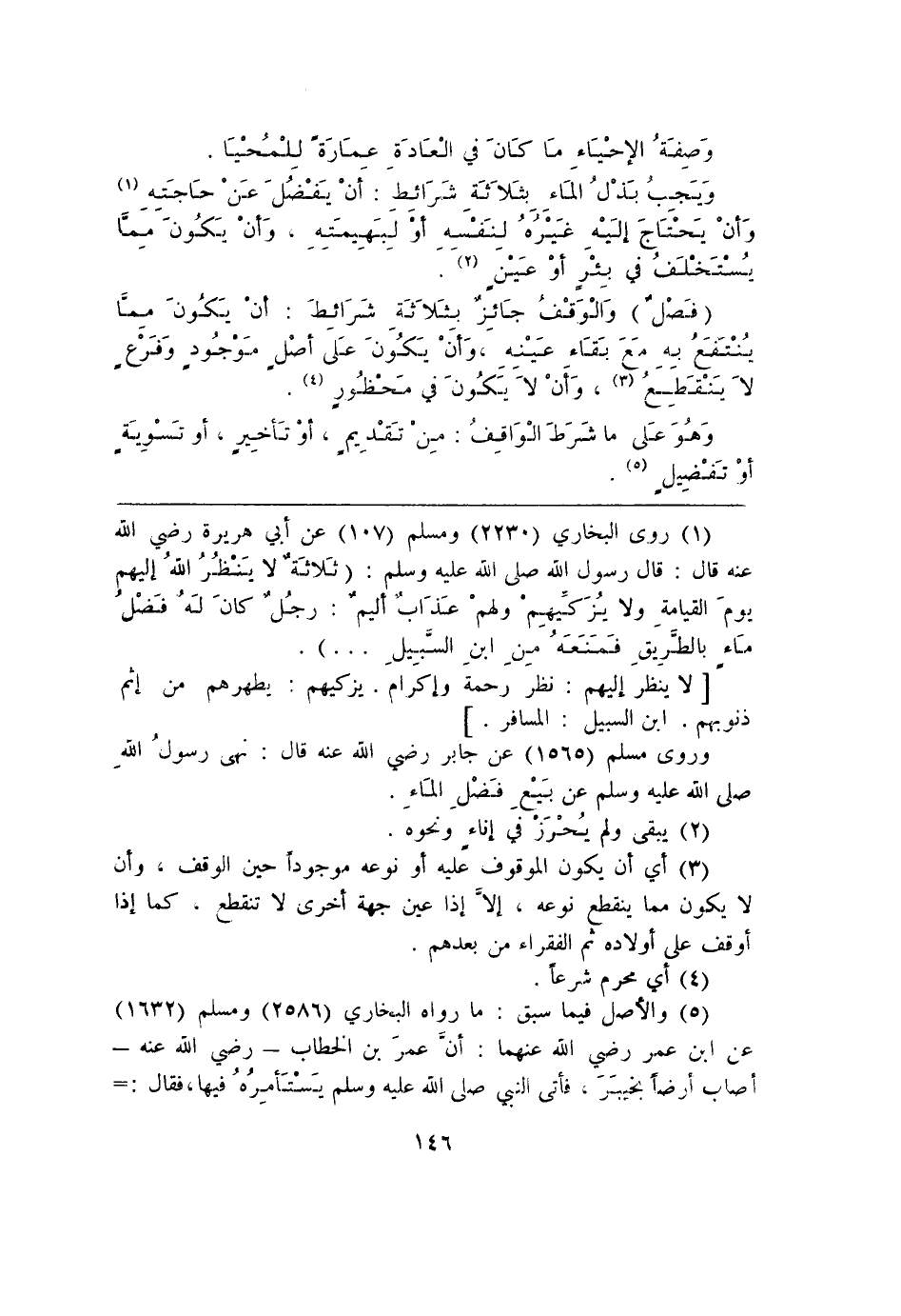 (¬5) والأصل فيما سبق: ما رواه البخاري (2586) ومسلم (1632) عن ابن عمر رضي الله عنهما: أن عمرَ بن الخطاب - رضي الله عنه - أصاب أرضاً بخيبَرَ، فأتى النبي صلى الله عليه وسلم يَسْتَأمِرُهُ فيها، فقال: =