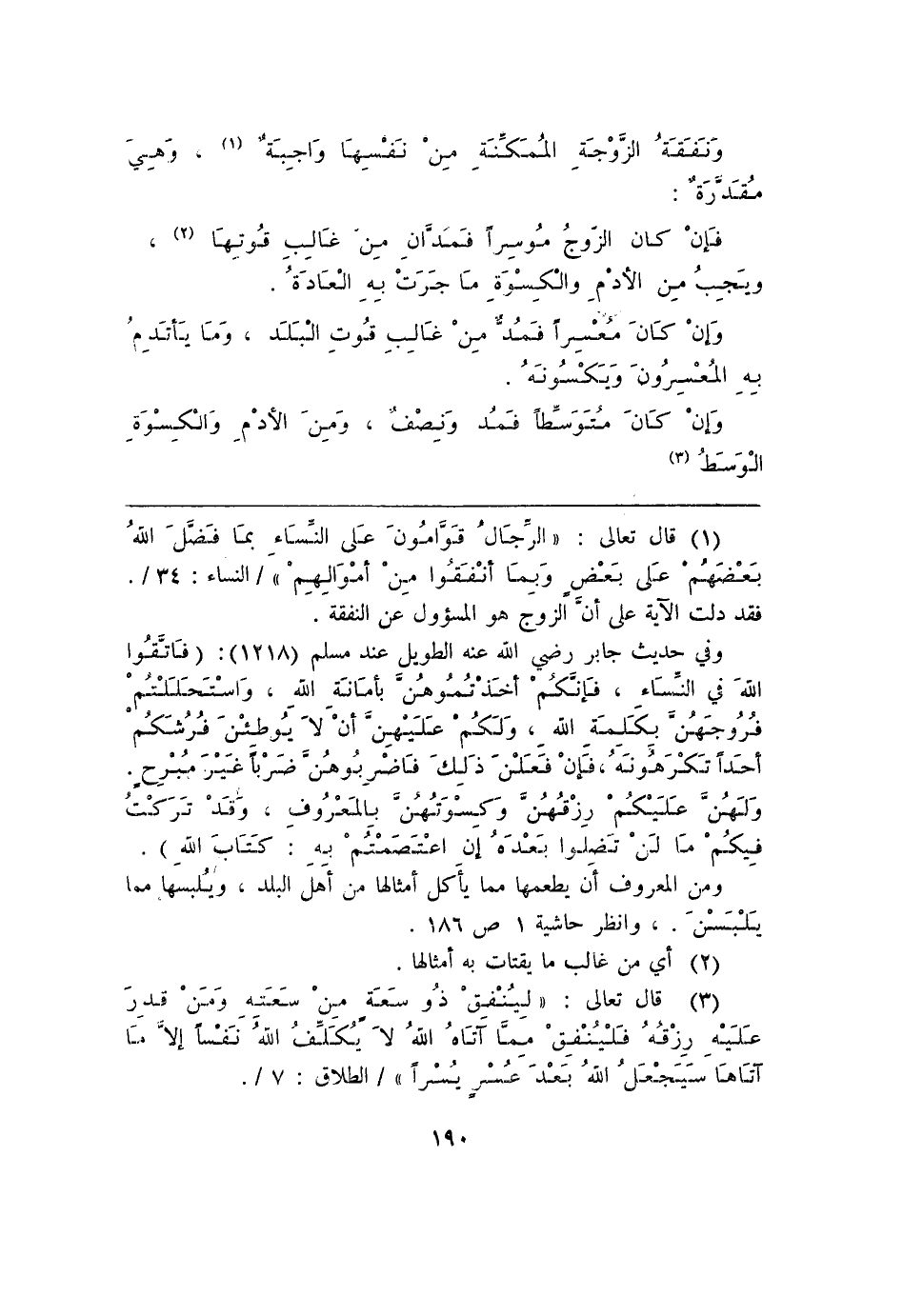 ومن المعروف أنَ يطعمها مما يأَكل أمثالها من أهَلَ البلد، ويلبسَها مما يَلبَسنَ.، وانظر حاشية 1 ص 186.