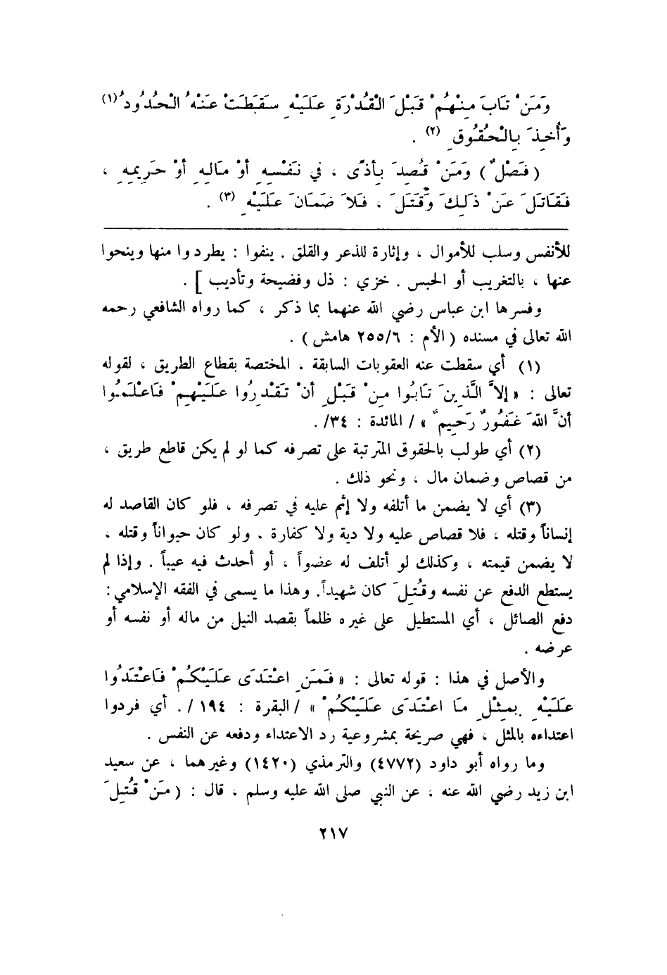 (¬1) أي سقطت عنه العقوبات الساقة؟ المختصة بقطاع الطريق، لقوله تعالى: " إلا الَذينَ تَابُوا مِنْ قَبْلِ أنْ تَقْدِرُوا عَلَيهِم فَاعْلمُوا أن اللهَ غَفُور رَحَيمٌ " / المائدة: 34/.