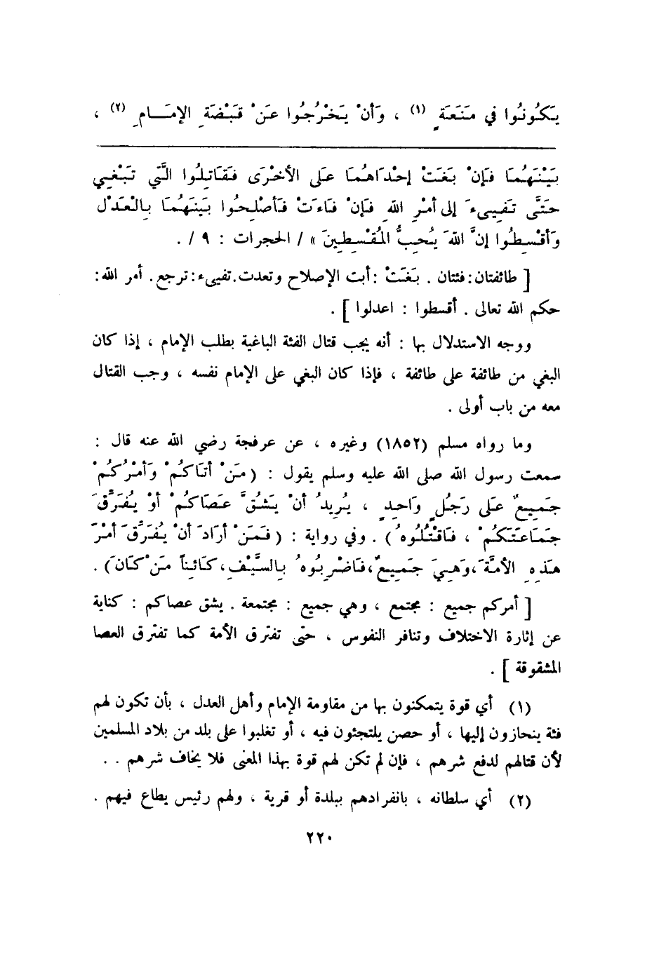 (¬1) أي قوة يتمكنون بها من مقاومة الإمام وأهل العدل، بأن تكون لهم فئة ينحازون إليها، أو حصن يلتجئون فيه، أو تغلبوا على بلد من بلاد المسلمين لأن قتالهم لدفع شرهم، فإن لم تكن لهم قوة بهذا المعنى فلا يخاف شرهم ..