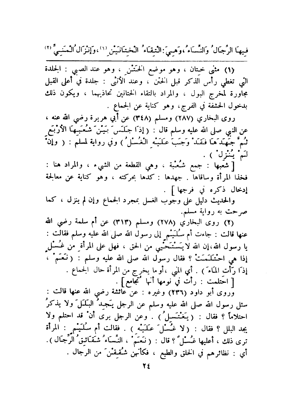 (¬2) روى البخاري (278) ومسلم (313) عن أم سلمة رضي الله عنها قالت: جاءت أم سُلَيْم: إلى رسول الله صلى الله عليه وسلم فقالت: