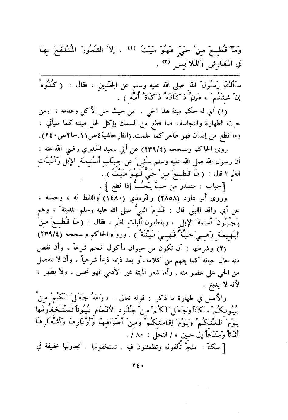 روى الحاكم وصححه (4/ 239) عن أبي سعيد الخدري رضي الله عنه: أن رسولَ الله صلى الله عليه وسلم سُئِلَ عن جِبَابِ أسْنمَةِ الإبل وَألياتِ الغنم؟ قال: (مَا قُطعَ منْ حَي فَهوَ ميَت).