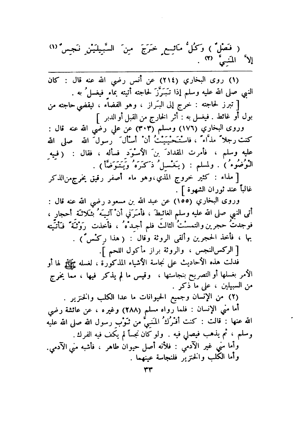 فدلت هذه الأحاديث على نجاسة الأشياء المذكورة، لغسله - صلى الله عليه وسلم - لها أو الأمر بغسلها أو التصريح بنجاستها، وقيس ما لم يذكر فيها، مما يخرج من السبيلين، على ما ذكر.