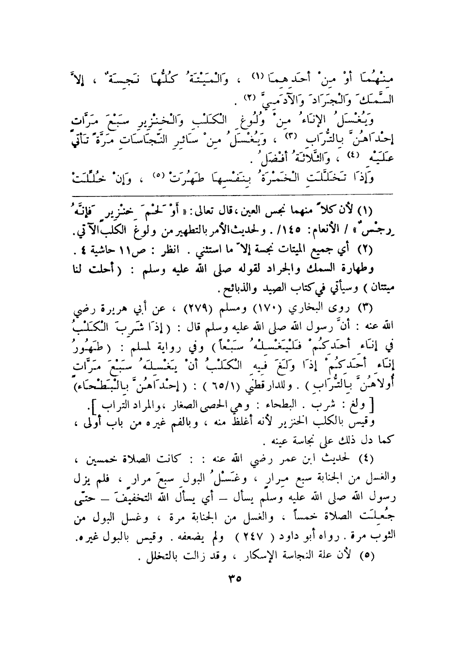 (¬3) روى البخاري (170) ومسلم (279)، عن أبي هريرة رضي الله عنه: أن رسول الله صلى الله عليه وسلم قال: (إذَا شَرب الْكَلب في إناء أحدكمْ فلْيَغْسِلْهُ سبعاً) وفي رواية لمسلم: (طهورُ