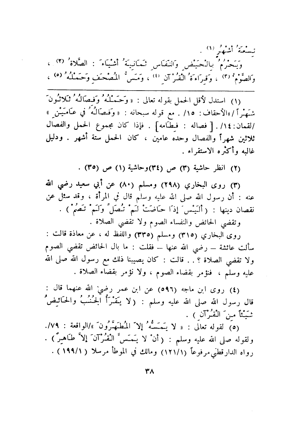 (¬3) روى البخاري (298) ومسلم (80) عن أبي سعيد رضي الله عنه: أن رسول الله صلى الله عليه وسلم قال في المرأة، وقد سئل عن نقصان دينها: (ألَيْس إذَا حَاضَتْ لَمْ تصَلً وَلَمْ تَصمُْ).