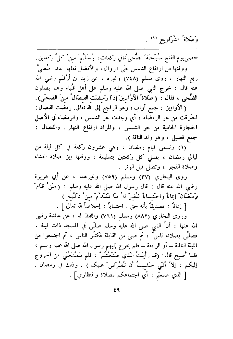 (الأوابين: جمع أواب، وهو الراجع إلى الله تعالى. رمضت الفصال: احترقت من حر الرمضاء، أي وجدت حر الشمس، والرمضاء في الأصل الحجارة الحامية من حر الشمس، والمراد ارتفاع النهار. والفصال: جمع فصيل، وهو ولد الناقة).