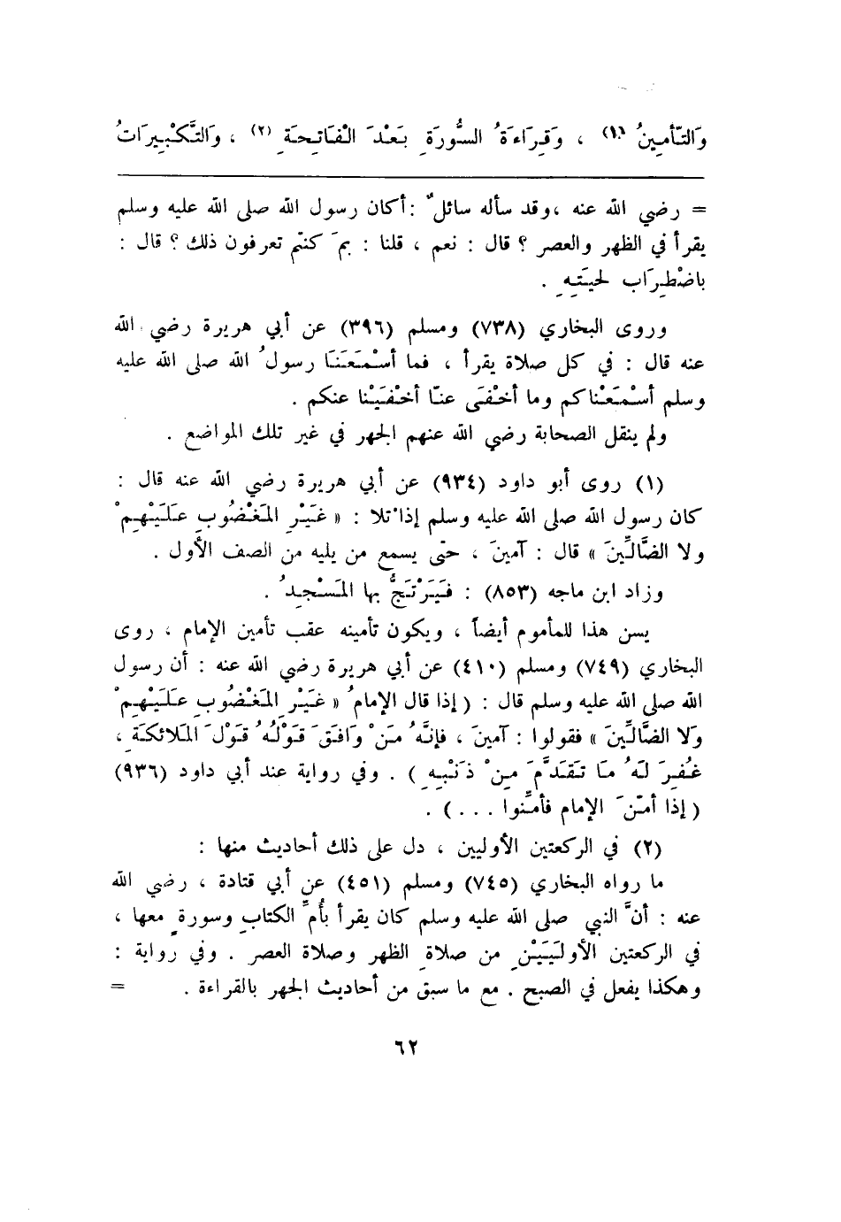 (¬1) روى أبو داود (934) عن أبي هريرة رضي الله عنه قال: كان رسول الله صلى الله عليه وسلم إذاْ تلا: " غيرِ المَغضُوب عَلَيْهِمْ ولا الضَالَينَ " قال: آمينَ، حتى يسمع من يليه من الصف الأَول.