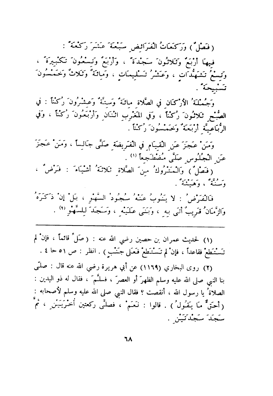(¬1) لحديث عمران بن حصين رضي الله عنه: (صَلً قائماً، فإنْ لم تسْتَطعْ فقاعداً، فإنْ لم تَسْتَطعْ فَعَلى جنْبٍ). انظر: ص 51 حا 4.