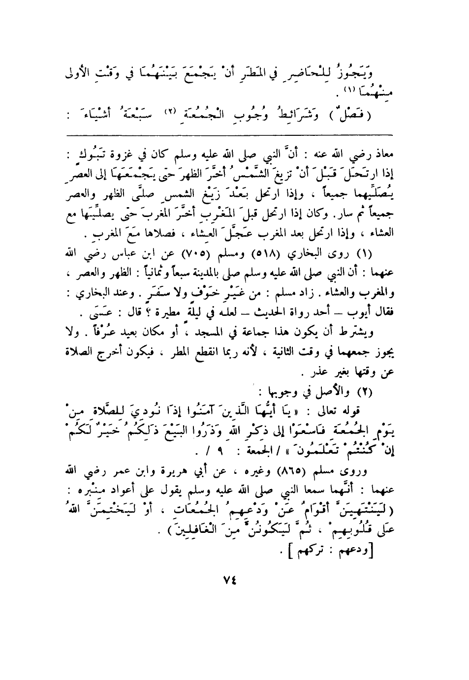 "فصل" وشرائط وجوب الجمعة (¬2) سبعة أشياء: