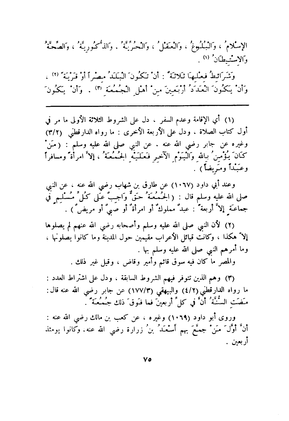 (¬3) وهم الذين تتوفر فيهم الشروط السابقة، ودل على اشتراط العدد: ما رواه الدارقطني. (2/ 4) والبيهقي (3/ 77) عن جابر رضي الله عنه قال: مَضَتِ السنةُ أن في كل أربعين فما فَوقَ ذلك جُمُعَةً.