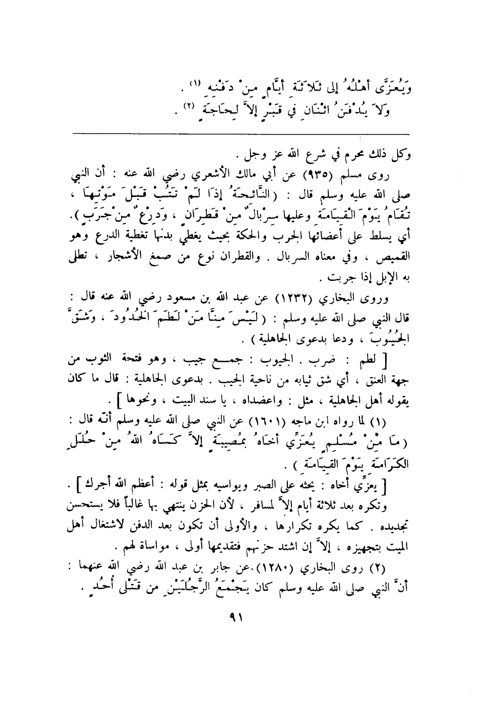 (¬1) لما رواه ابن ماجه (1601) عن النبي صلى الله عليه وسلم أنّه قال: (مَا منْ مُسْلم يُعَزَي أخَاهُ بمصِيبَة إلا كَسَاهُ اللهُ مِنْ َحلل الكَرَامَة يَوْمَ القِيَامَة).