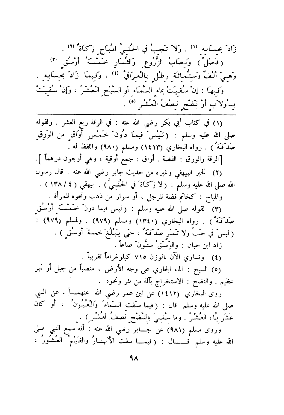 (¬1) في كتاب أبي بكر رضي الله عنه: في الرقة ربع العشر. ولقوله صلى الله عليه وسلم: (ليسَ فيمَا دُونَ خمسِ أوَاق من الورِقِ صَدَقَة). رواه البخاري (1413) ومسلم (980) واللفظ له.