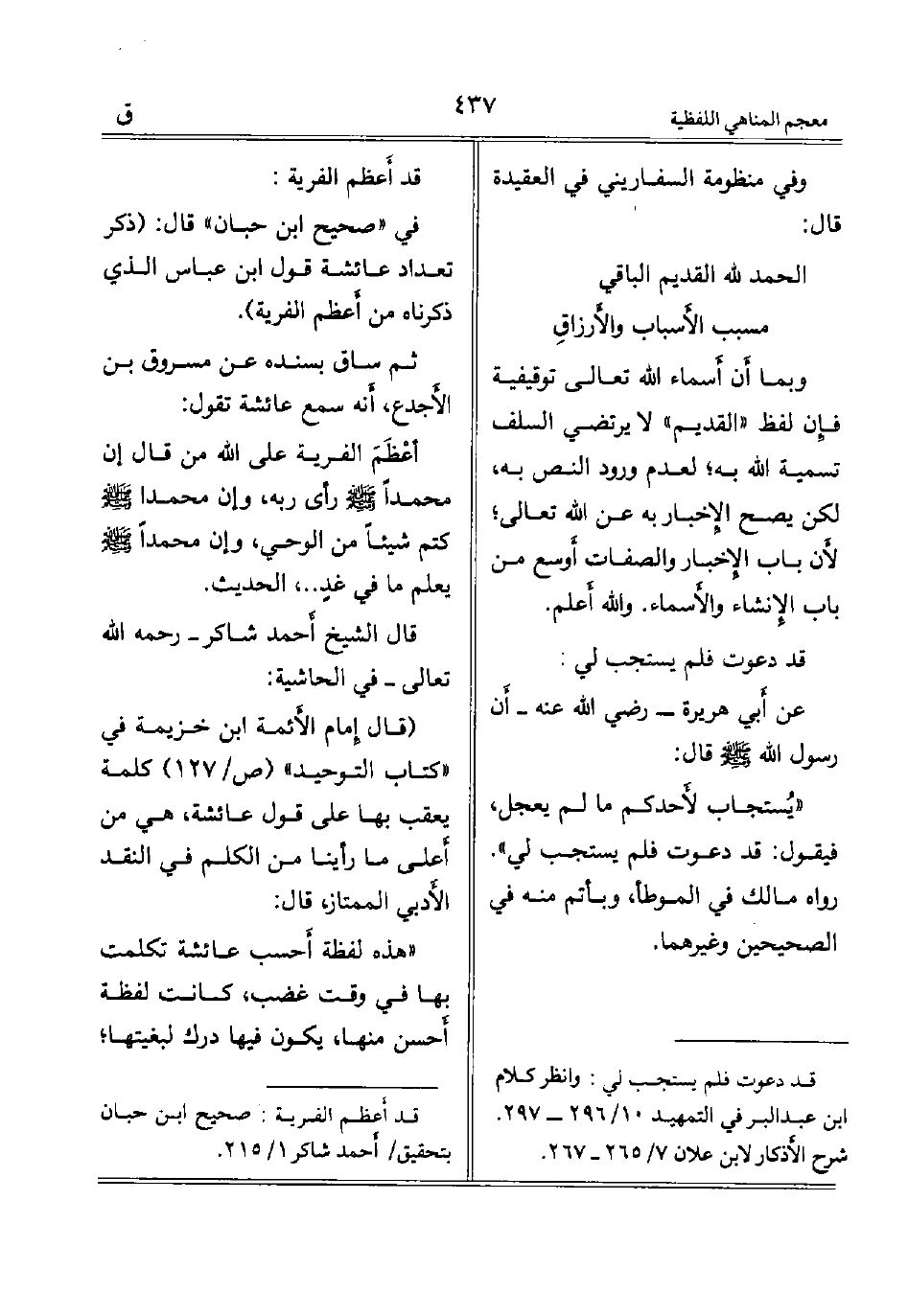 (¬3) (الكرْم: الحيوان 1/ 339، 343. فتح الباري 10/ 566. شرح مسلم 15 / 4. تهذيب السنن 7/ 268 - 269. معالم السنن 4/ 130. شرح ابن علان 7/ 66. رياض الصالحين ص/ 712. شرح الأدب المفرد 2/ 262. كنز العمال 3/ 656، 657، 658 - 16 / 427. وشرح الأدب المفرد أيضاً 2/ 238. وزاد المعاد 2/ 9، 37، 3/ 184. والصمت وآداب اللسان لابن أبي الدنيا ص/ 424 رقم / 363. تحرير ألفاظ والتنبيه ص/ 216. الفتاوى الحديثية ص/ 135. الجامع لشعب الإيمان 9/ 426 - 428. وانظر في حرف التاء: تعس الشيطان. وفي حرف الخاء: خليفة الله.