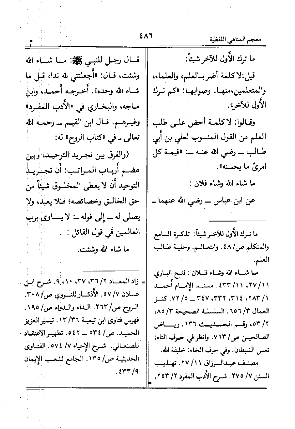 فلم يلبث أن عمي. وفي جامع ابن وهب أن رسول الله - صلى الله عليه وسلم - أُتي بغلام، فقال: ((ما سميتم هذا؟)) قالوا: السائب، فقال: ((لا تسموه السائب، ولكن: عبد الله)) قال: فغلبوا على اسمه، فلم يمت حتى ذهب عقله. فحفظُ المنطق وتخيَّرُ الأسماء من توفيق الله للعبد، وقد أمر النبي عليه الصلاة والسلام من تمنى: أن يحسن أُمنيته، وقال: ((إن أحدكم لا يدري ما يكتب له من أمنيته)) أي يقدر له منها، وتكون أُمنيته سبب حصول ما تمناه أو بعضه، وقد بلغك أو رأيت أخبار كثير من المتمنين أصابتهم أمانيهم أو بعضها، وكان أبو بكر الصديق - رضي الله عنه - يتمثل بهذا البيت: