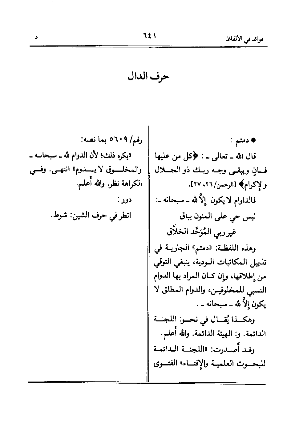 ((أما قوله: جرت عادة الله تعالى. فما زال هذا الرجل ونظراؤه من أصحابه يطلقون العادة على ما لا يدعهم الإسلام أن يجروا على الله خلافه من فعل وترك، فيقولون: جرت عادته أنه لا يأمر بالفحشاء، ولا يصدق الكاذب، ونحو ذلك. فيُقال لهم: العادة مأخوذة من العود، فأول جزئي من هذه العادة هل نظر فيه إلى ذلك الفعل ورجحانه قبل جري العادة أم لم ينظر؟ إن لم ينظر فهو اتفاقي، وإن نظر فذلك الوجه مستقل بالبعث على الفعل بدون جري عادة وهو ما أردنا بالحسن والقبح في الفعل والترك مثلاً، وكذلك كل جزئي منه أو من غيره فالإحالة على العادة مجرد غي وتلبيس، وهلا جرى على عادات العرب التي رأوها مكارم أخلاق بتزيين الشيطان وغروره، مثل الطواف مكشوفي العورات، ووأد البنات، وسائر ما تعوده أصناف بني آدم من القبائح التي رأوها كذلك إلْفاً منهم واستحلاء وكبراً وعصبية كالغارات وغير ذلك، بل رد ذلك عليهم وغيرهم، فلو كان الاعتبار بالإلف والعادة لكان آكد الشرائع ما تطابقت آراء الأولين والآخرين عليه ولم يخلص عنه غير المخلصين من اتباع الآباء في أديانهم وعوائدهم. إنْ عامة. وإنْ خاصة. ثم نقول لهم: هل حصول العادة أثر في تحصيل وصف يسند إليه المدح والذم؟ فهو قولنا ولا يضرنا المنازعة في علة ذلك الوصف بعد الاتفاق على المعلول، أم لم يؤثر؟ فقد استوى وجودها وعدمها، فلا معنى لذكرها وملاحظتها)) .