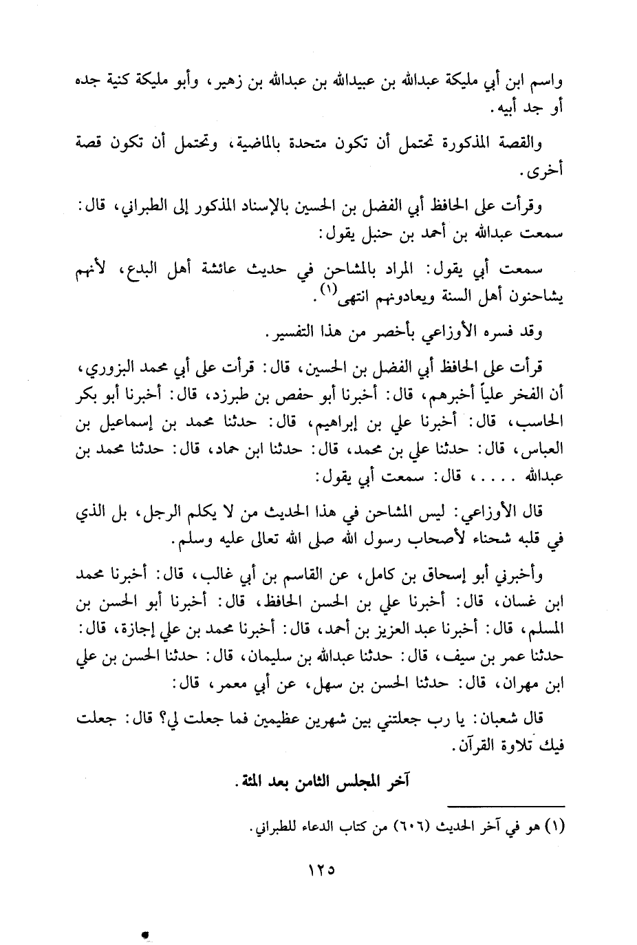 قَالَ شَعْبَانُ يَا رَبُّ جَعَلْتَنِي بَيْنَ شَهْرَيْنِ عَظِيمَيْنِ فَمَا جَعَلْتُ لِي قَالَ جَعَلْتُ فِيكَ تِلَاوَةَ الْقرَان لَا آخر الْمجْلس الثَّامِن بعد المئة