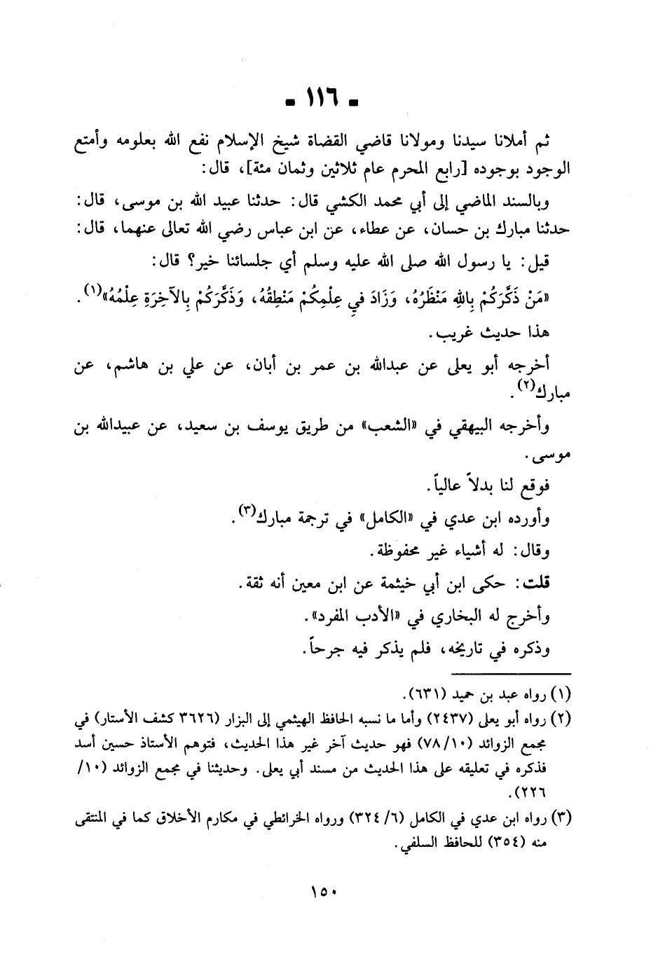116 - ثمَّ أملانا سيدنَا ومولانا قَاضِي الْقُضَاة شيخ الْإِسْلَام نفع الله بِعُلُومِهِ وأمتع الْوُجُود بِوُجُودِهِ رَابِع الْمحرم عَام ثَلَاثِينَ وثمان مئة قَالَ