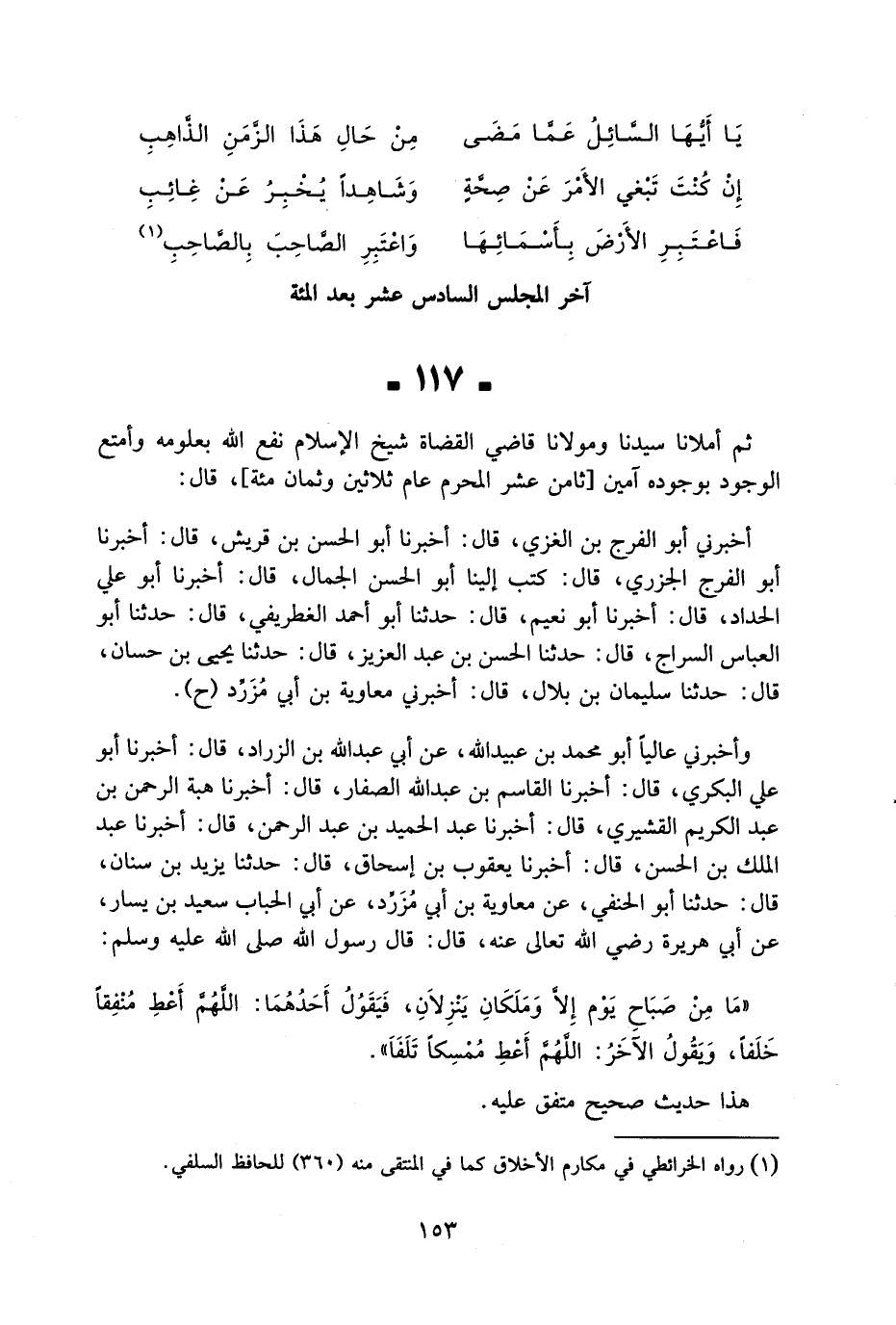 117 - ثمَّ أملانا سيدنَا ومولانا قَاضِي الْقُضَاة شيخ الْإِسْلَام نفع الله بِعُلُومِهِ وأمتع الْوُجُود بِوُجُودِهِ آمين ثامن عشر الْمحرم عَام ثَلَاثِينَ وثمان مئة قَالَ