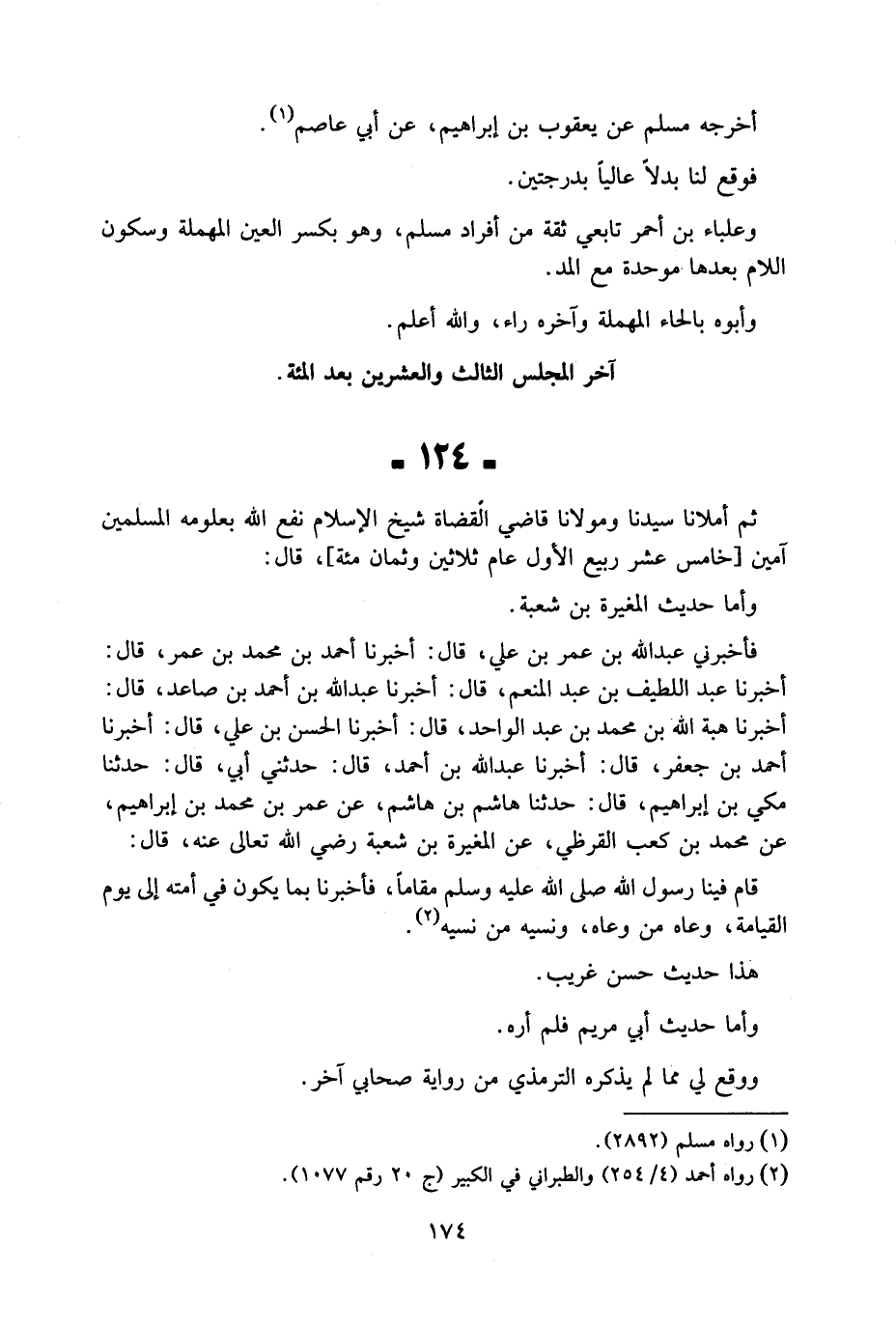124 - ثمَّ أملانا سيدنَا ومولانا قَاضِي الْقُضَاة شيخ الْإِسْلَام نفع الله بِعُلُومِهِ الْمُسلمين آمين خَامِس عشر ربيع الأول عَام ثَلَاثِينَ وثمان مئة قَالَ