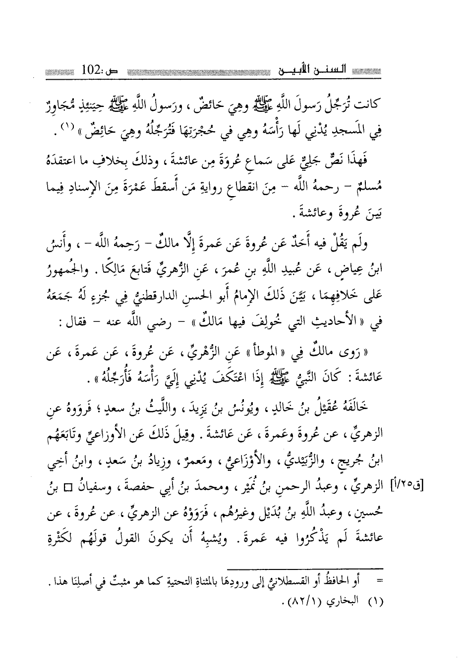 فَهَذَا نَص جلي على سَماع عُرْوَة من عَائِشَة وَذَلِكَ بِخِلَاف مَا اعتقده مُسلم رَحمَه الله من انْقِطَاع رِوَايَة من أسقط عمْرَة من الْإِسْنَاد فِيمَا بَين عُرْوَة وَعَائِشَة