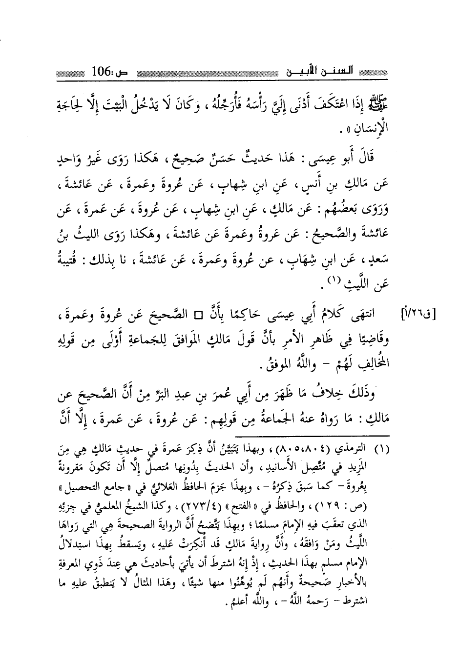 انْتهى كَلَام أبي عِيسَى حَاكما بِأَن الصَّحِيح عَن عُرْوَة وَعمرَة وقاضيا فِي ظَاهر الْأَمر بِأَن قَول مَالك الْمُوَافق للْجَمَاعَة أولى من قَوْله الْمُخَالف لَهُم وَالله الْمُوفق