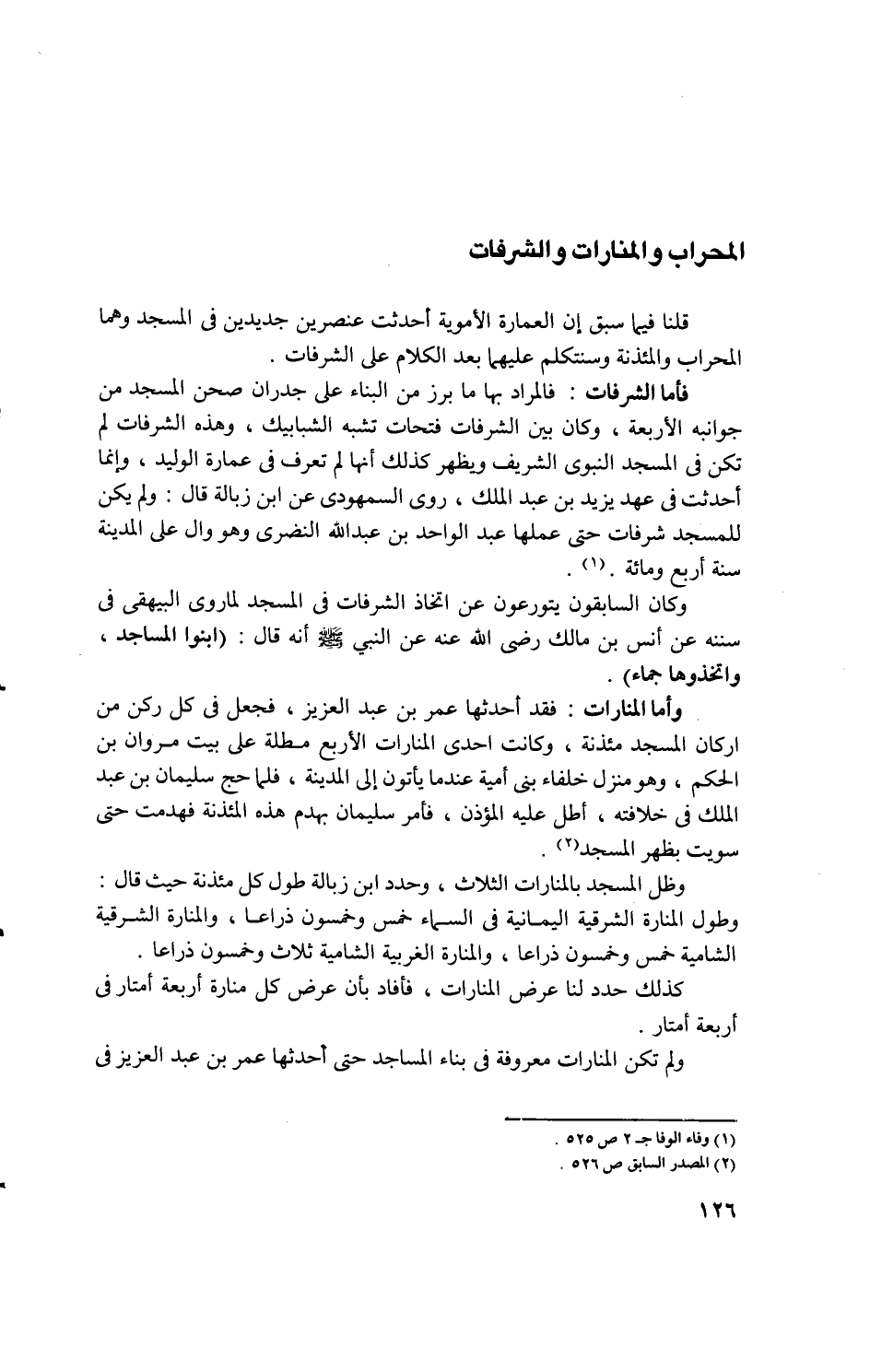 ... وكان السابقون يتورعون عن اتخاذ الشرفات في المسجد لما روى البيهقى في سننه عن أنس بن مالك رضى الله عن النبى - صلى الله عليه وسلم - أنه قال: (ابنوا المساجد، واتخذوها جماء).