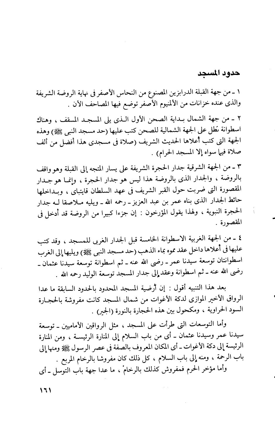 4 - من الجهة الغربية الاسطوانة الخامسة قبل الجدار الغربى للمسجد، وقد كتب عليها في أعلاها داخل عقد مموه بماء الذهب (حد مسجد النبى- صلى الله عليه وسلم -) ويليها إلى الغرب اسطوانتان توسعة سيدنا عمر -رضى الله عنه - ثم اسطوانة توسعة سيدنا عثمان -رضى الله عنه- ثم اسطوانة وعقد إلى جدار المسجد توسعة الوليد رحمه الله.