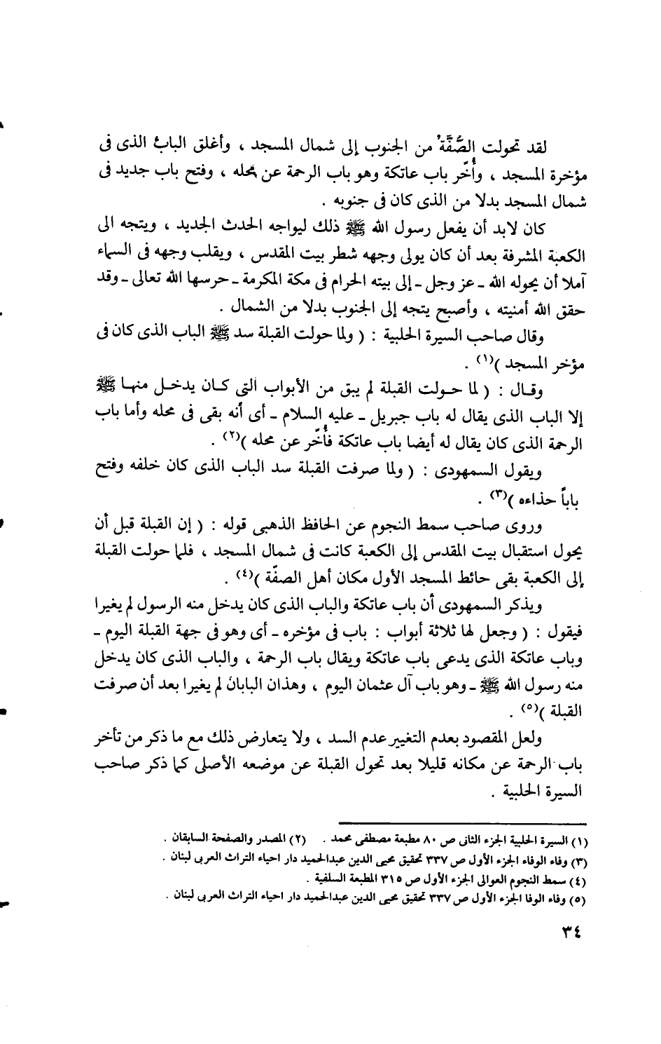 ... وقال صاحب السيرة الحلبية: (ولما حولت القبلة سد - صلى الله عليه وسلم - الباب الذى كان في مؤخر المسجد) (1).