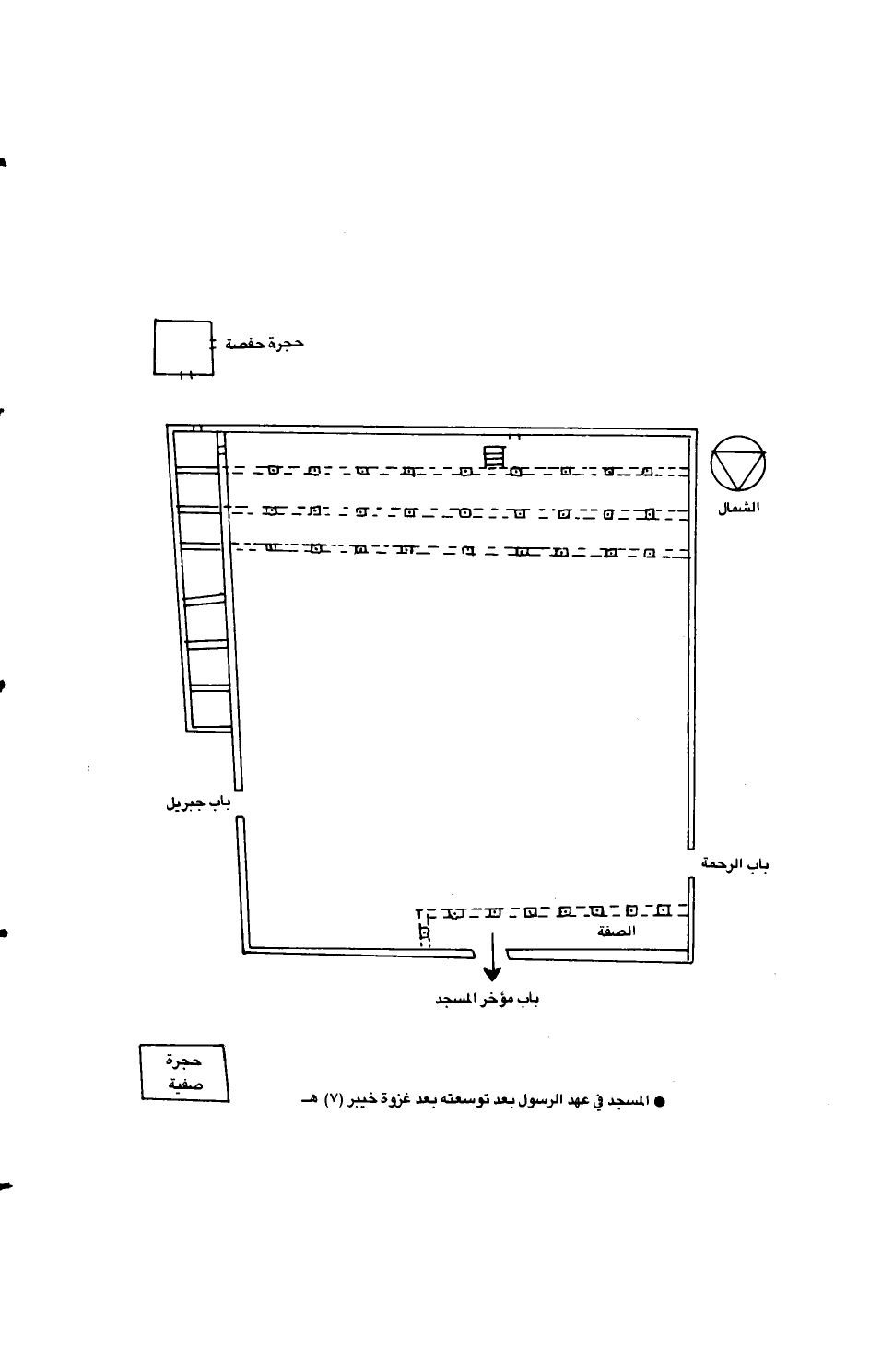 *المسجد في عهد الرسول بعد توسيعه بعد غزوة خيبر (7) هـ