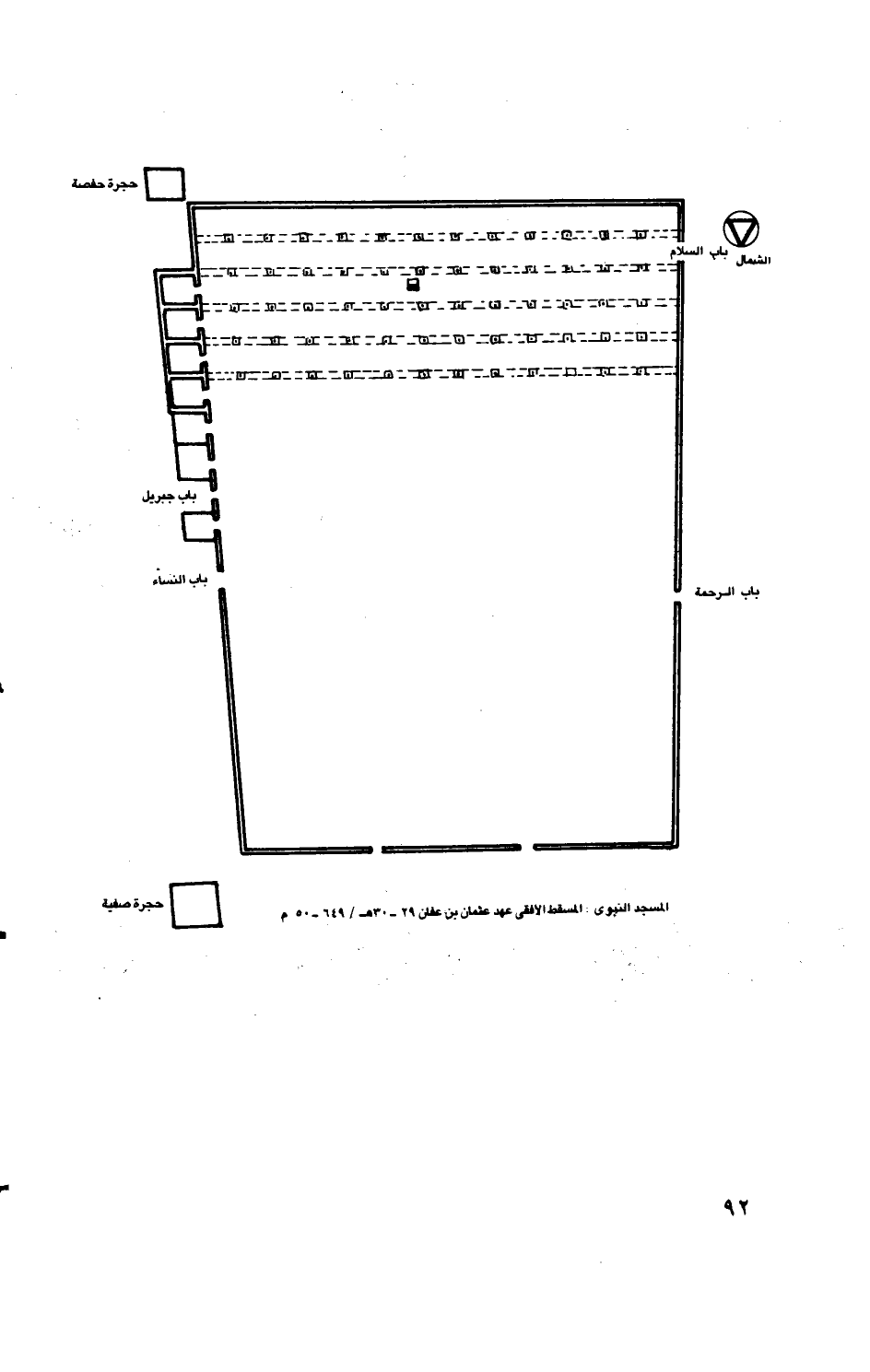 المسجد النبوى: المسقط الأفقى عهد عثمان بن عفان 29 - 30 هـ/649 - 50م