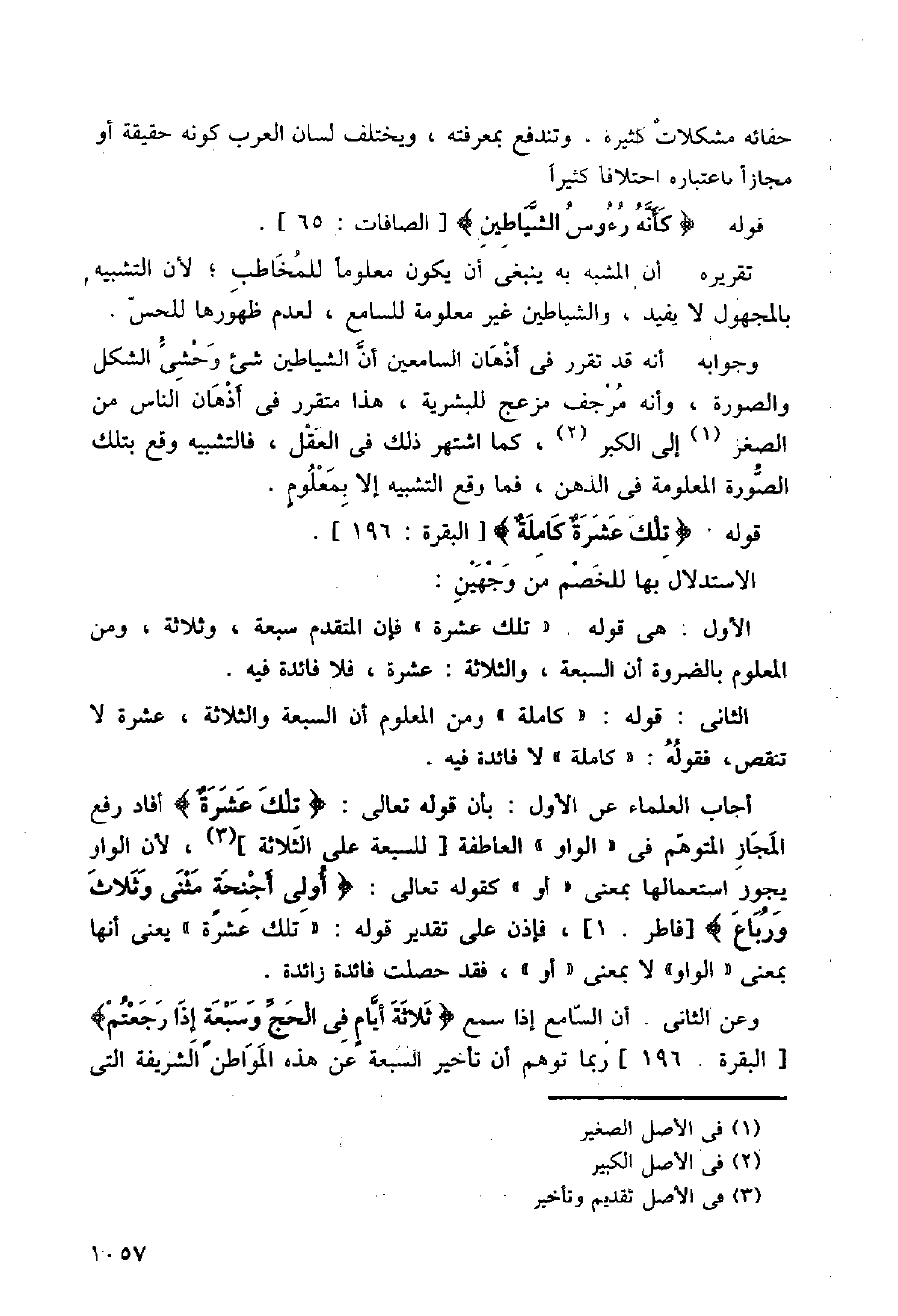 وعن الثاني: أن السامع إذا سمع (ثلاثة أيام في الحج وسبعة إذا رجعتم) [البقرة:196] ربما توهم أن تأخير السبعة عن هذه المواطف الشريفة التي