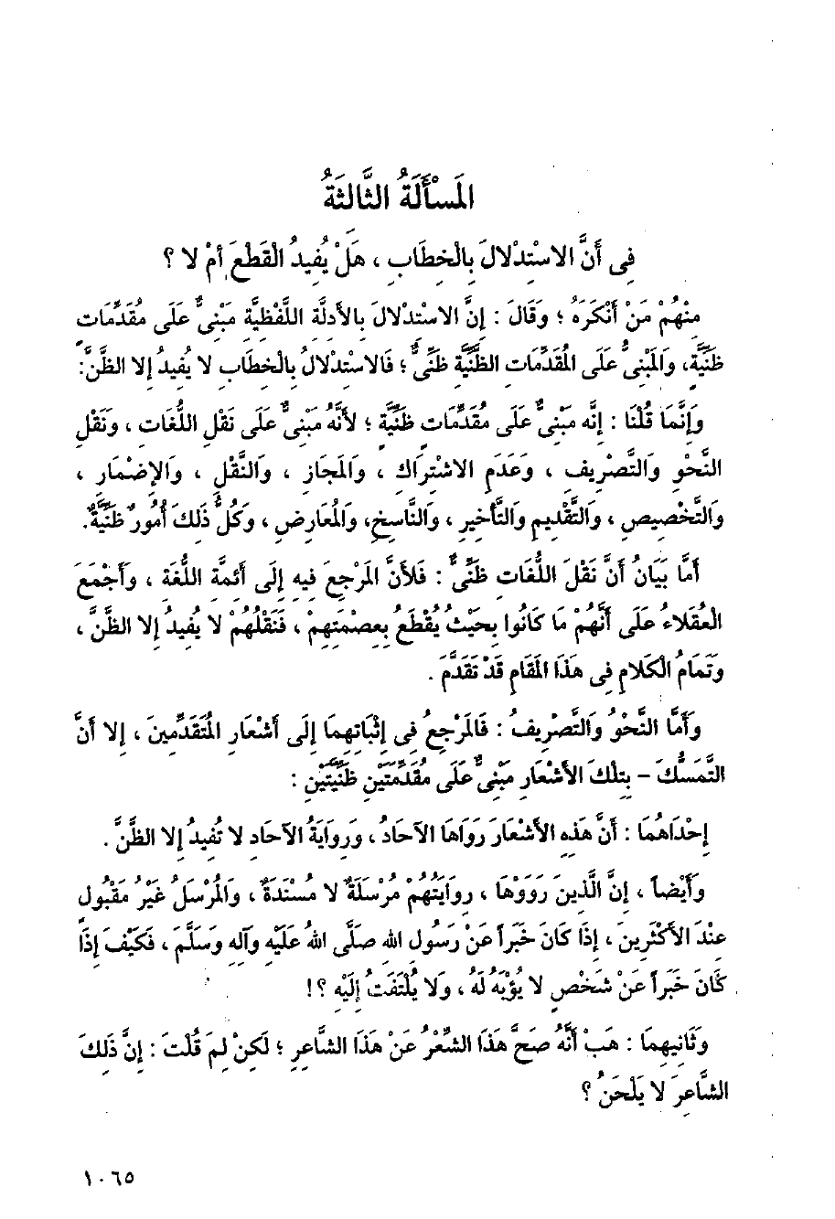 وأما النحو والتصديف: فالمرجع في إثباتهما إلى أشعار المتقدمين، إلا أن التمسك بتلك الأشعار مبني على مقدمتين ظنيتين: