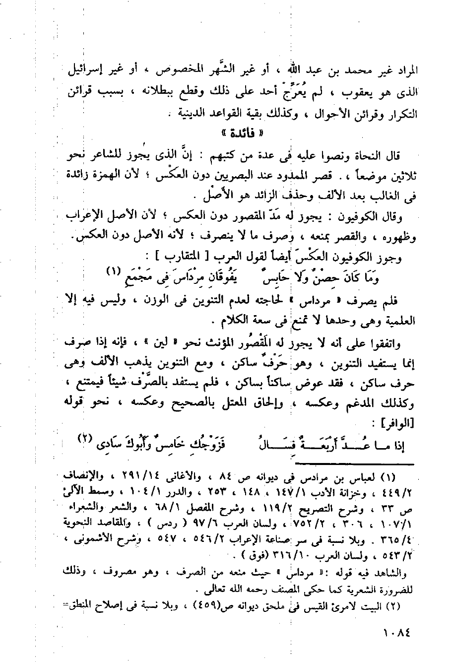فلم يصرف (مرداس) لحاجته لعدم تنوين في الوزن، وليس فيه إلا العلمية وهي وحدها لا تمنع في سعة الكلام.