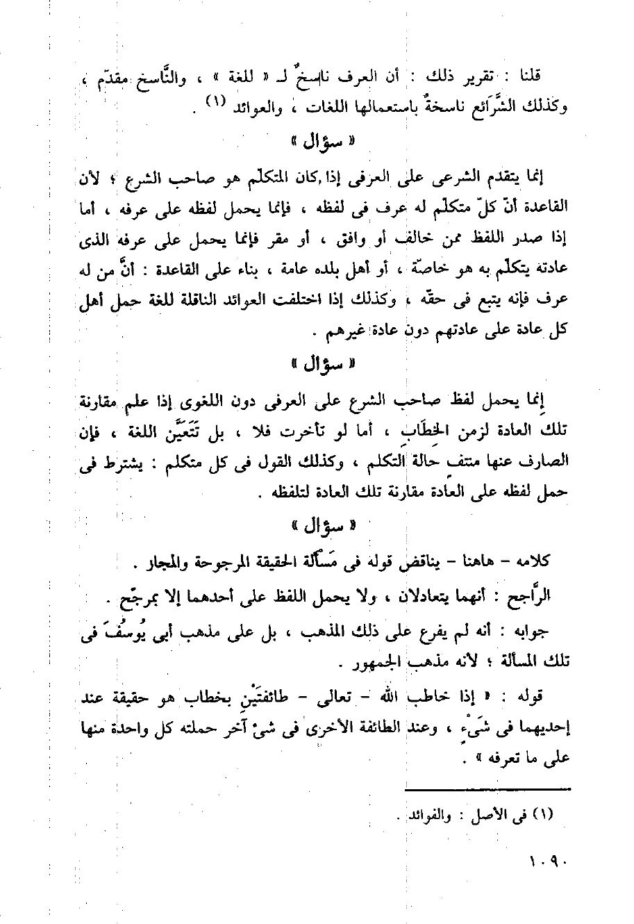 قلنا: تقرير ذلك: أن العرف ناسخ لـ (للغة)، والناسخ مقدم، وكذلك الشرائع ناسخة باستعمالها اللغات، والعوائد.