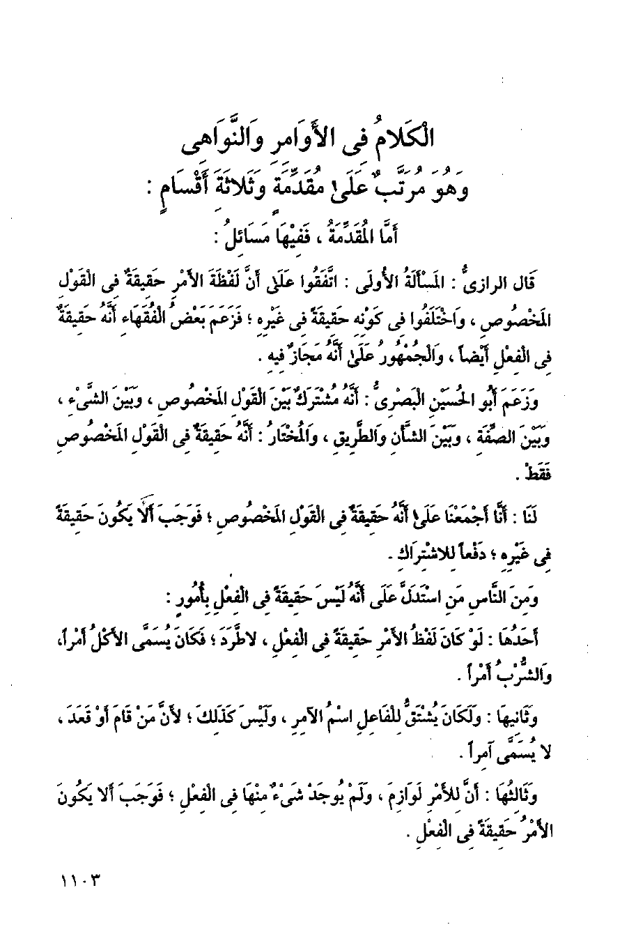 قال الرازي: المسألة الأولى: اتفقوا على أن لفظة الأمر حقيقة في القول المخصوص، واختلفوا في كونه حقيقة في غيره؛ فزعم بعض الفقهاء أنه حقيقة في الفعل أيضا، والجمهور على أنه مجاز فيه.