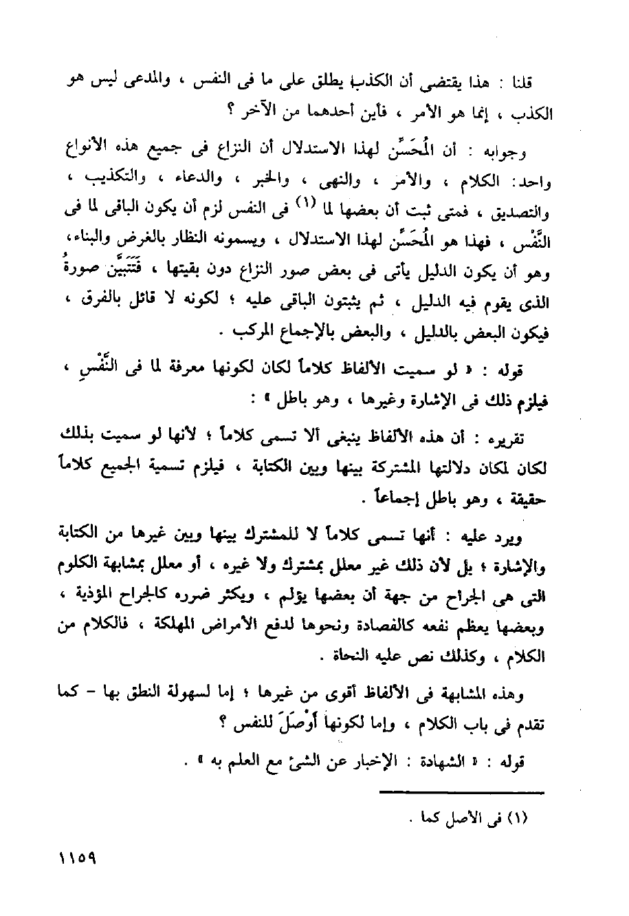 ويرد عليه: زنها تسمى كلاما لا للمشترك بينها وبين غيرها من الكتابة والإشارة، بل لأن ذلك غير معلل بمشترك ولا غيره، أو معلل بمشابهة الكلوم التي هي الجراح من جهة أن بعضها يؤلم، ويكثر ضرره كالجراح المؤذية، وبعضها يعظم نفعه كالفصادة ونحوها لدفع الأمراض المهلكة، فالكلام من الكلام، وكذلك نص عليه النحاة.