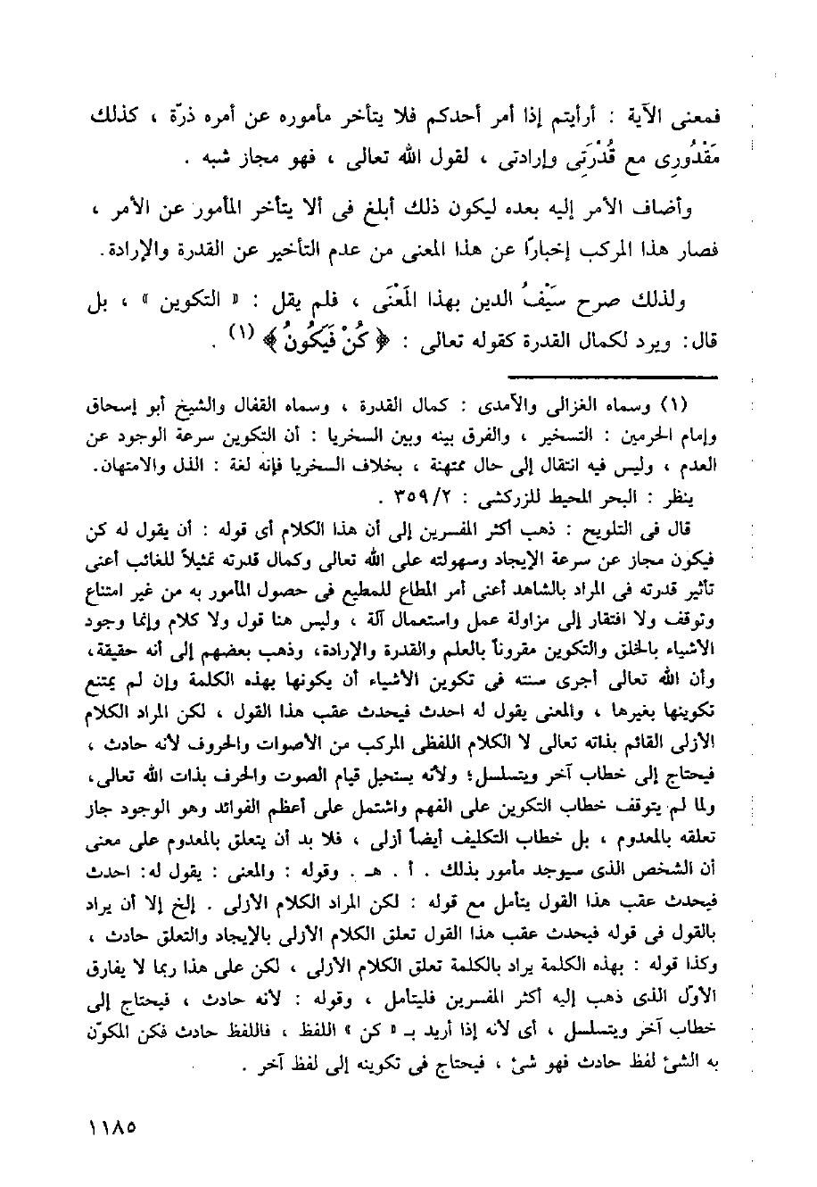 ولذلك صرح سيف الدين بهذا المعنى، فلم يقل: (التكوين)، بل قال:،يرد لكما القدرة كقوله تعالى: (كن فيكون)