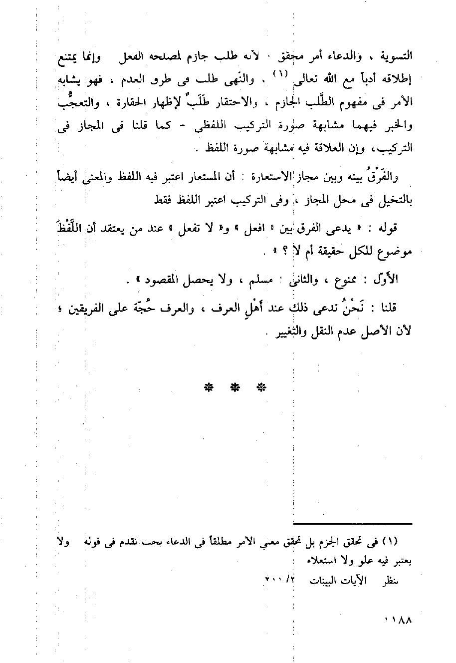 التسوية، والدعاء أمر محقق، لأنه طلب جازم لمصلحة الفعل، وإنما يمتنع إطلاقه أدبا مع الله تعالى، والنهي طلب في طرق العدم، فهو يشابه الأمر في مفهوم الطلب الجازم والاحتقار طلب لإظهار الحقارة، والتعجب والخبر فيهما مشابهة صورة التركيب اللفظي كما قلنا في المجاز في التركيب وإن العلاقة فيه مشابهة صورة اللفظ