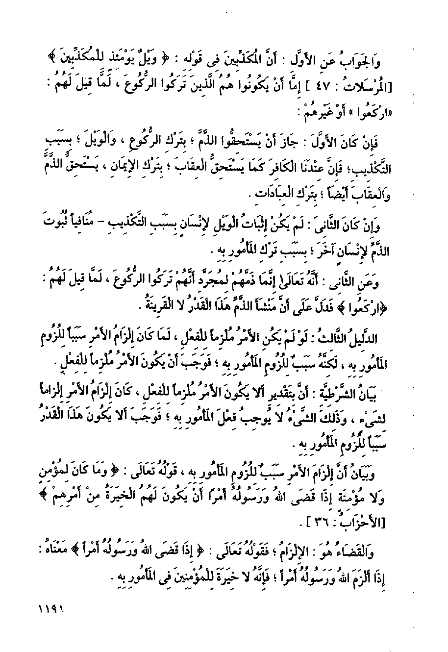 وعن الثاني: أنه تعالى إنما ذمهم لمجرد أنهم تركوا الركوع، لما قيل لهم: (اركعوا) فدل على أن منشأ الذم هذا القدر لا القرنة.