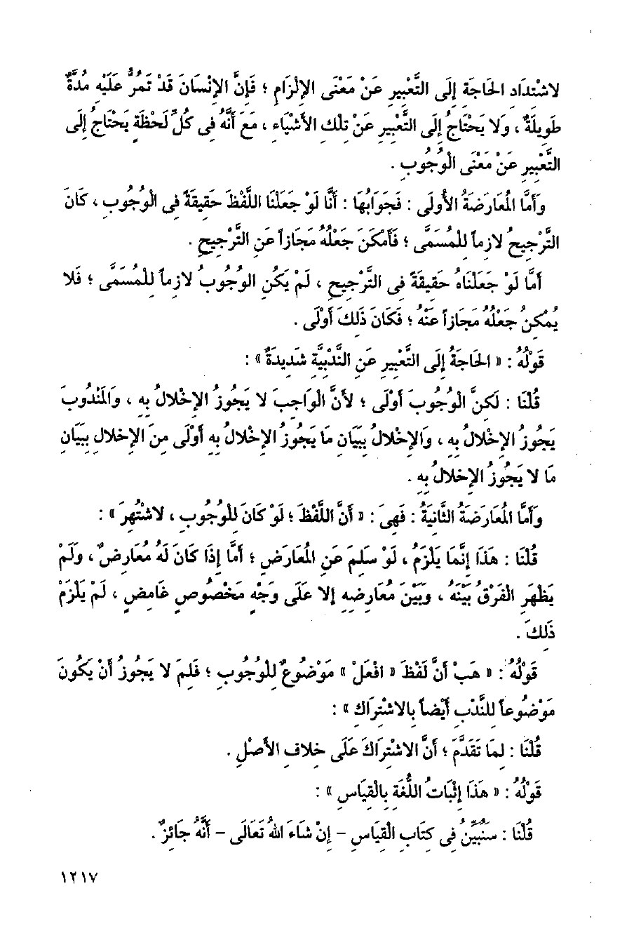 أما لو جعلناه حقيقة في الترجيح، لم يكن الوجوب لا زما للمسمى، فلا يمكن جعله مجازا عنه، فكان ذلك أولى.