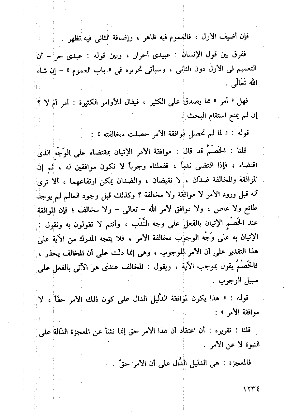 قلنا: الخصم قد قال: موافقة الأمر اتيان بمقتضاه على الوجه الذي اقتضاه، فإذا اقتضى ندبا، ففعلناه وجوبا لا نكون موافقين له، ثم إن الموافقة والمخالفة ضدان، لا نقيضان، والضدان يمكن ارتفاعهما، ألا ترى أنه قبل ورود الأمر لا موافقة ولا مخالفة؟ وكذلك قبل وجود العالم لم يوجد طائع ولا عاص، ولا موافق لأمر الله تعالى ولا مخالف، فإن الموافقة عند الخصم الإتيان به على وجه الوجوب مخالفة الأمر، فلا يتجه المدرك من الآية على هذا التقدير على أن الأمر للوجوب، وهي إنما دلت على أن المخالف يحذر، فالخصم يقول بموجب الآية، ويقول: المخالف عندي هو الآتي بالفعل على سبيل الوجوب.