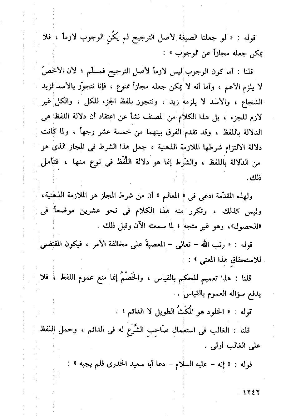 ولهذة المقدمة ادعى في (المعالم) أن من شرط المجاز هو الملازمة الذهنية، وليس كذلك، وتكرر منه هذا الكلام في نحو عشرين موضعا في (المحصول)، وهو غير متجه، لما سمعته الآن وقبل ذلك.
