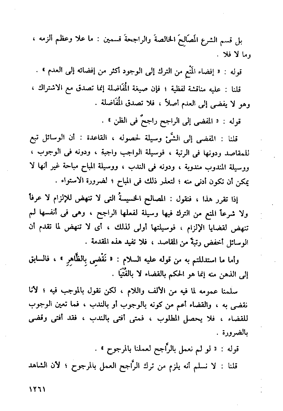 بل قسم الشرع المصالح الخالصة والراجحة قسمين: ما علا وعظم ألزمه، وما لا فلا.