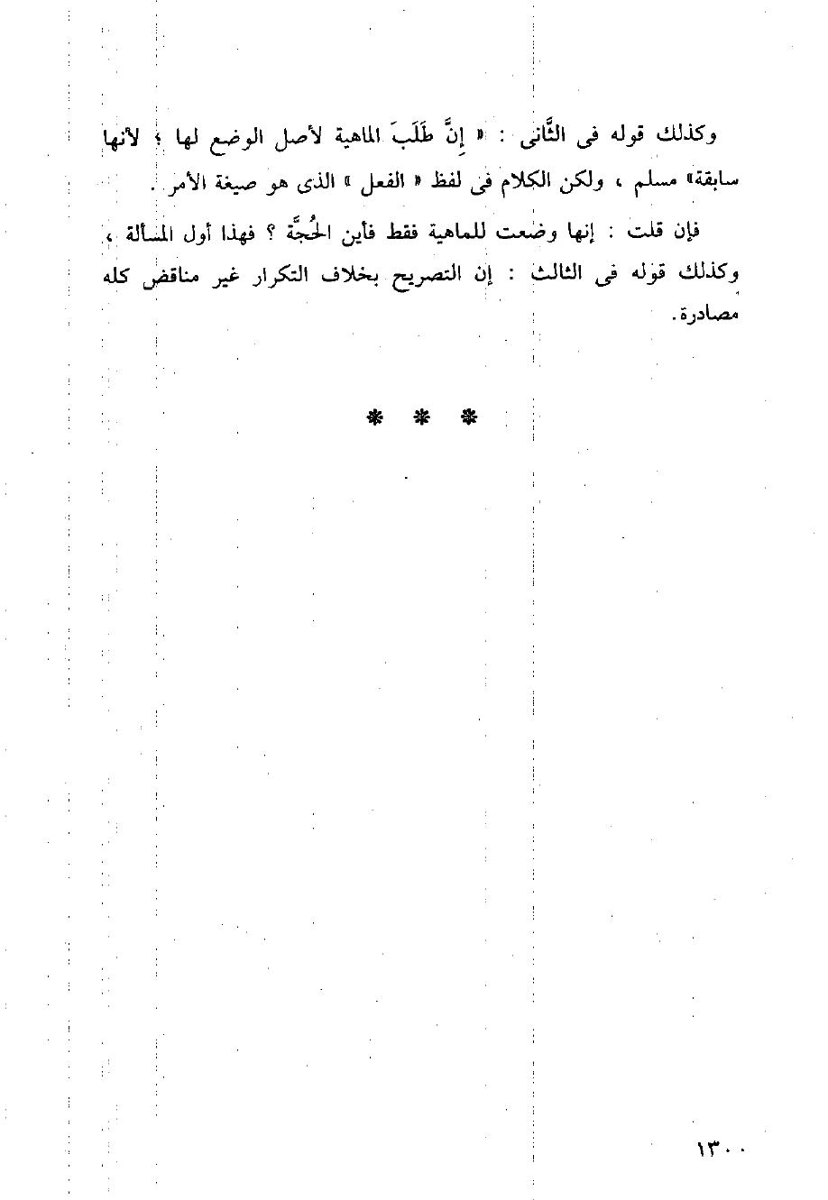 وكذلك قوله في الثاني: (إن طلب الماهية لأصل الوضع لها، لأنها سابقة) مسلم، ولكن الكلام في لفظ (الفعل) الذي هو صيغة الأمر.