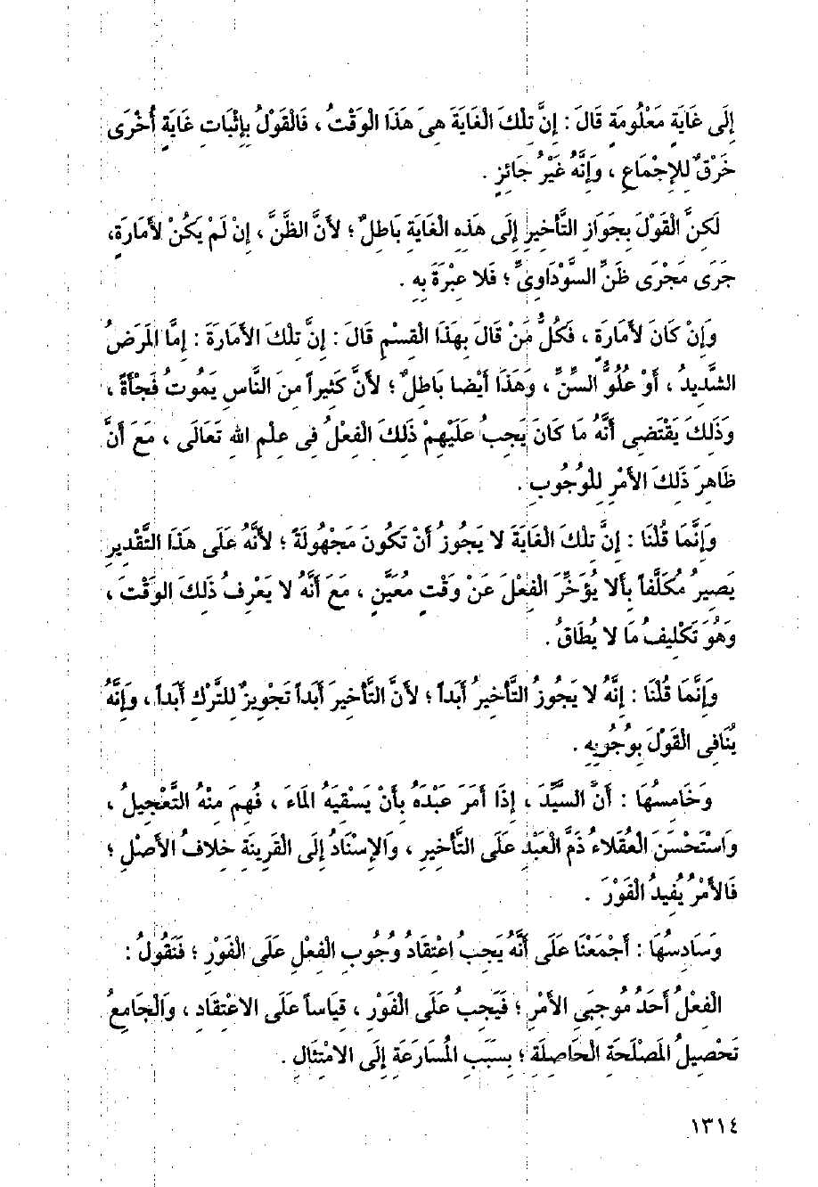 وإنما قلنا: إن تلك الغاية لا يجوز أن تكون مجهولة، لأنه على غير هذا التقدير يصير مكلفا بألا يؤخر الفعل عن وقت معين، مع أنه لا يعرف ذلك الوقت، وهو تكليف ما لا يطاق.